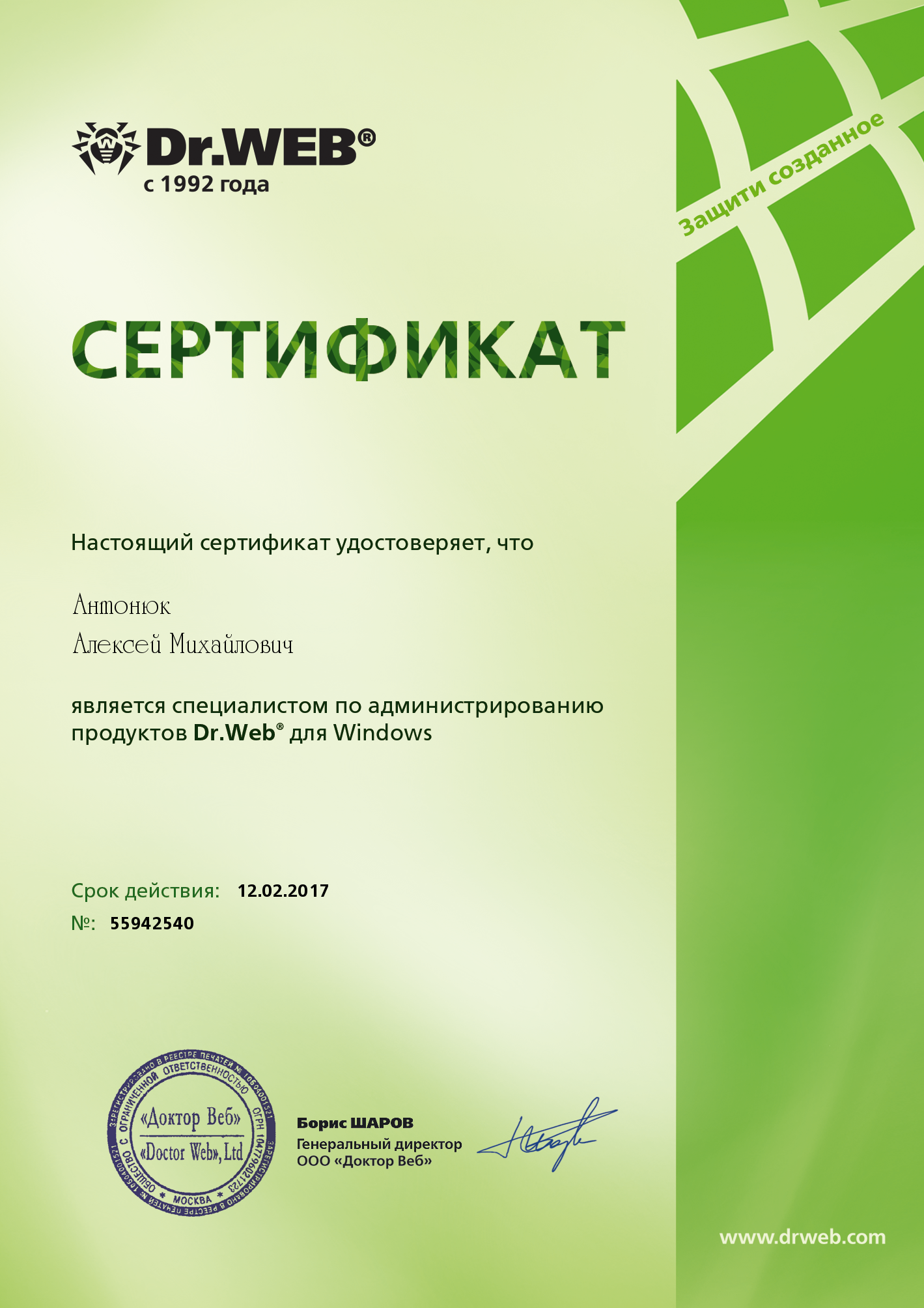 DWCERT-030-10 - Услуга «Антивирус Dr.Web» для дома. Сертифицированный пользователь услуги «Антивирус Dr.Web» для дома.